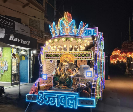 A modern and exciting way to celebrate the wedding barat with music, lights, and dance on a moving setup.